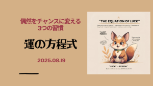 運の方程式(1200 x 680 px) 2025年8月19日 「【運がいい人の秘密】運は「偶然×行動×解釈」、運は技術でつくれるは本当!」 コメントを残す コメントをキャンセル名前 (必須) メールアドレス(公開されません) (必須) ウェブサイト コメントコメント送信 Δ