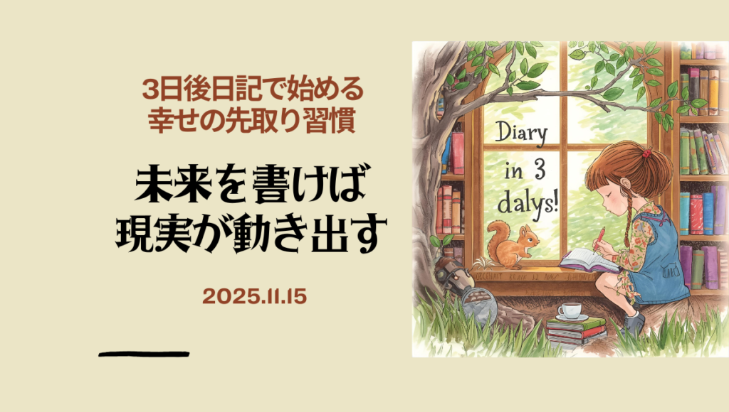 「最近、なんだか毎日が同じ。動きたいのに動けない。願いはあるのに、一歩が出ない。」そんな気持ち、実は私もずっと抱えていました。だけどある日、ふと出会った “3日後日記” という習慣が、ちょっとだけ心に火をつけてくれたんです。とは言え、「日記なんて続かないし」「どうせ三日坊主だし」と思うじゃないですか。でもねぇ、この “3日後に起きる嬉しい未来を、先に過去形で書いてしまう” という方法は、ちょっと違ったんですよ。脳が勝手に「え?これ起きたんだっけ?」と混乱してくれるおかげで、現実が動き出す。ほんとデショウカ!?って最初は疑ったけれど、まぁ聞いてください。ここでは、動画の内容をベースに、私が自分の体験も重ねながら、3日後日記の魅力をシェアしたいと思います。