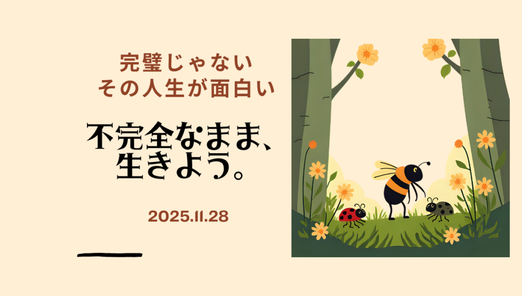 ✍️あとがき:私たちって、つい「うまくやる方法」を探してしまう。でも、本当に必要なのは――「うまくやれない自分を認める勇気」。その一歩が踏み出せたら、人生はもっと柔らかく、もっと楽しく、もっとあなたらしくなる。今日くらいは、頑張らなくていい。できない自分に、そっとハイタッチしてあげよう。