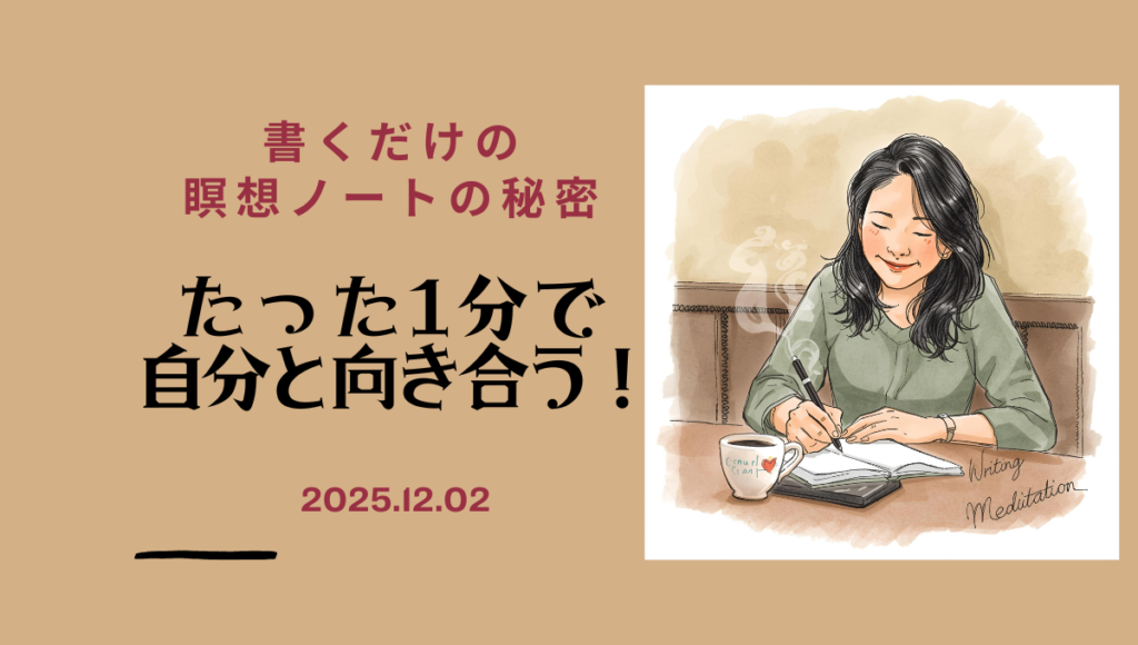 あとがき:日々の忙しさの中で、自分の心を整える時間を作るのは簡単なことではありません。でも、『書いて整える1分間瞑想ノート』は、そのハードルをぐっと下げてくれます。私も最初は半信半疑でしたが、実際に試してみると、たった1分の「書く時間」が心の整理につながると実感しました。みなさんもぜひ、自分のペースで心の中をノートに書き出す時間を持ってみてくださいね。そこから、小さな変化がじわじわと始まるかもしれません。