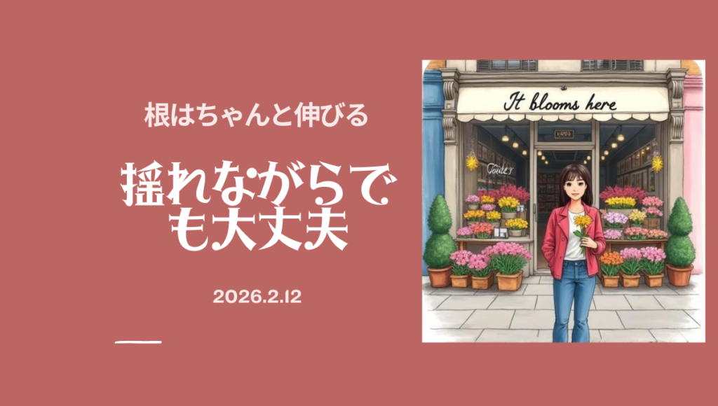 あとがき:わたしも、何度も「ここではない」と思ってきました。でも振り返ると、その場所で流した涙や笑顔が、いまのわたしの根になっています。咲くとは、派手に輝くことではないのかもしれません。与えられた一日を、静かに、ていねいに生きること。きょうもまた、いまいる場所で、小さな花をひとつ。