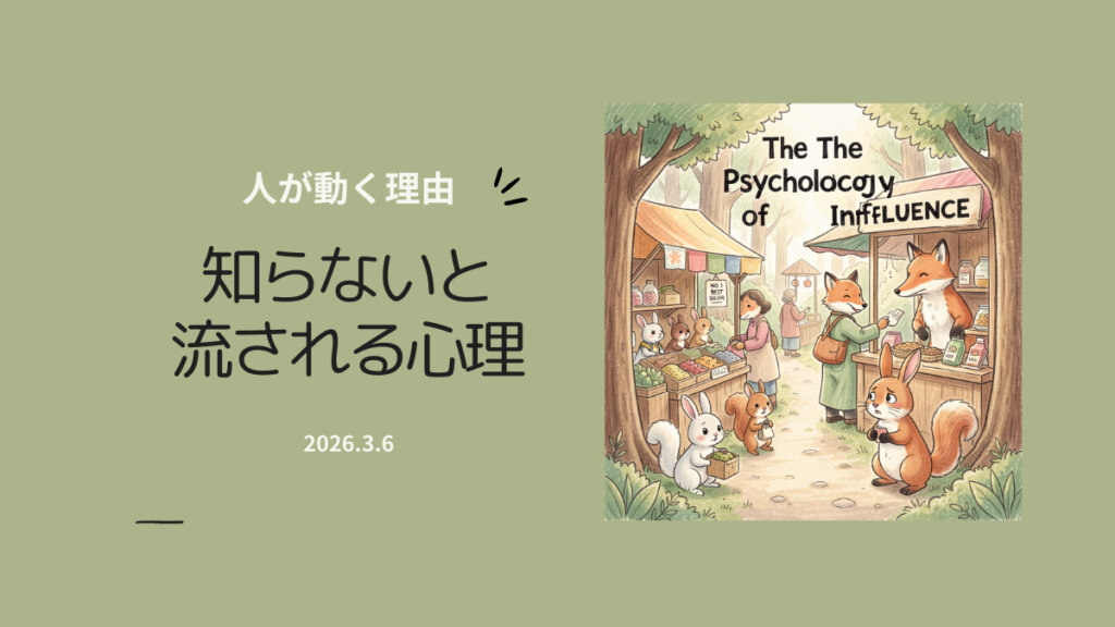人にすすめられると断れない。買うつもりがなかったのに契約してしまう。そんな経験はありませんか。あとから「なぜ買ったのだろう」と首をかしげることもあります。実はそれ、人の心のしくみが関係しています。私たちは思っている以上に、周囲の影響を受けています。本記事では、『影響力の武器[新版]』の内容をもとに、人が動くしくみのポイントをまとめています。社会心理学の研究に基づく信頼性の高い知識です。原理を知るだけで、だまされにくくなり、人間関係もぐっと楽になります。今日からできる小さな行動も紹介します。自分を守りながら、心地よい選択をするヒントとして読んでみてください。
